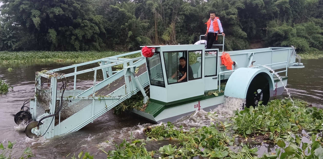 廣西玉林九洲江管委會(huì)購(gòu)買的DFSHL110型全自動(dòng)水葫蘆打撈船